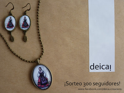 O premio será o da foto: conxunto de colgante e pendentes ilustrados motivo “beilladora”.